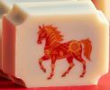 Mandarin flavoured white chocolates, printed with a Chinese 2026 Horse motif, available by the box.