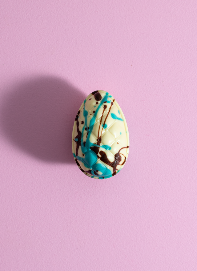 A gorgeous egg with a stunning hand painted spatter effect.