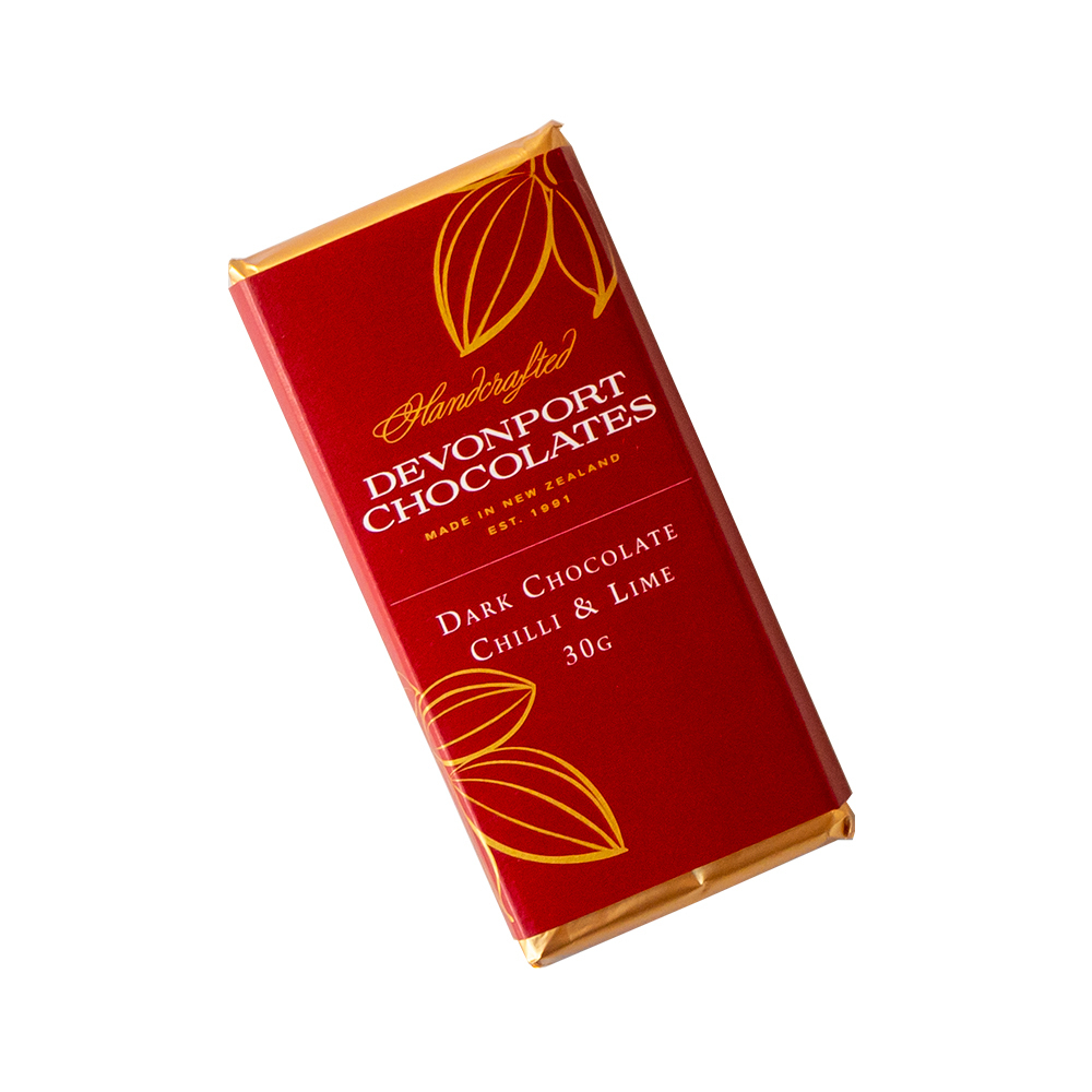 55% cocoa solids dark chocolate with lime oil and chilli powder.