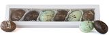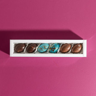 STRICTLY ADULTS ONLY! Box of 6 eggs, 2 of each flavour - each with one caramel half and one naughty half - milk chocolate and rum, dark chocolate amaretto and white chocolate vodka passionfruit!
